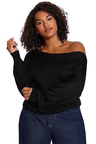 Trendyol FeMan normal passform basic carmen krage stickade kläder plus size tröja, svart, 3XL, Svart, 3XL