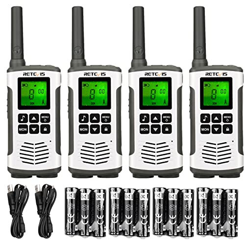 Retevis RT45 Walkie Talkie, PMR446 16 Kanaler, VOX Handsfree, LED-Ficklampa, 10 Ton Samtal, 3AA Batteri, Walkie Talkie Batteri, Rädda, Nödsituation (Silver, 4 Delar)