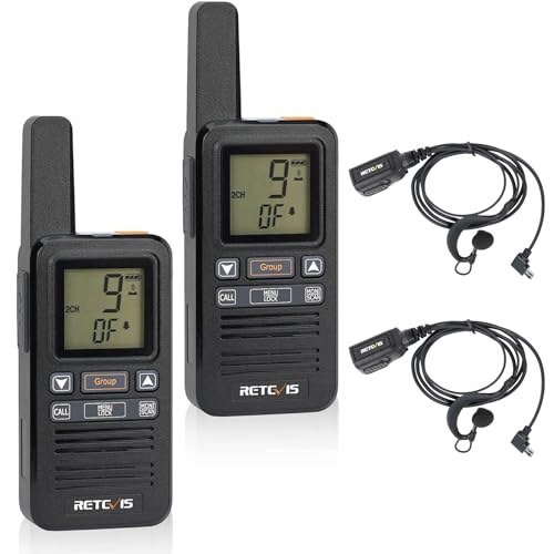Retevis RA635 Walkie Talkie PMR446, 16 Kanaler, LED-ficklampa, LCD-Bakgrundsbelyst Skärm, 10 Samtalston, VOX Handsfree, Långdistans Walkie-Talkie, för Utomhusaktivitet Inomhus (svart, 2 st)