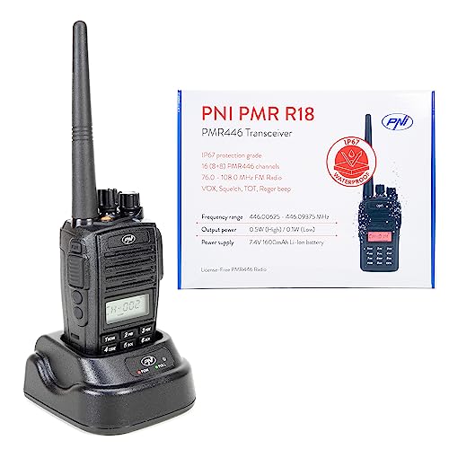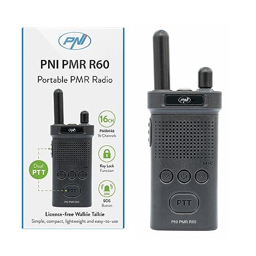 PNI PMR R60 446MHz bärbar radiostation, 0,5W, skanning, knapplås, SOS, bildskärm, 1200mAh batteri