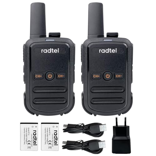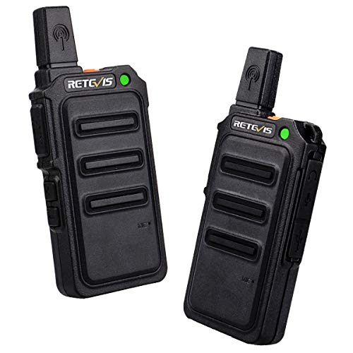 Retevis RT619 Walkie Talkie, PMR446 1300mAh Uppladdningsbar Tvåvägsradior Micro USB, VOX, Metal Back Clip, Mini Hiking Radioapparater Professional för Familjen, Cykling (2 ST, Svart)