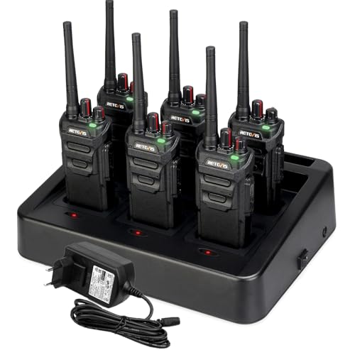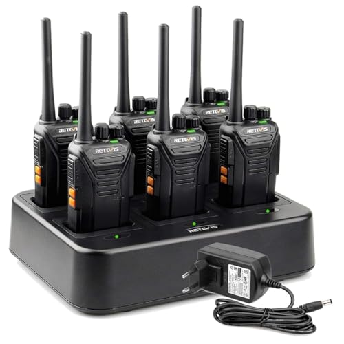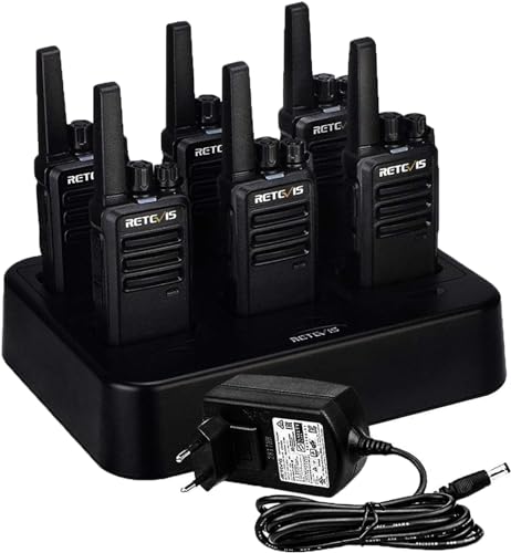 Retevis RT668 Walkie Talkie con Sexvägs Laddare, PMR446 Kanal 16, VOX, Nivå 0-9 Squelch, Stark, Spara Ström, Walkie Talkie Ricaricabili Portatile per Scuola, Hotel (6 Pezzi, Nero)