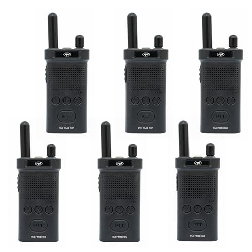 Kit med 6 bärbara radiostationer PNI PMR R60 446 MHz, 0,5 W, 16 programmerbara kanaler, 16 PMR och 50 CTCSS och 104 DCS-toner, skanning, nyckellås, SOS, skärm, 1 200 mAh batteri