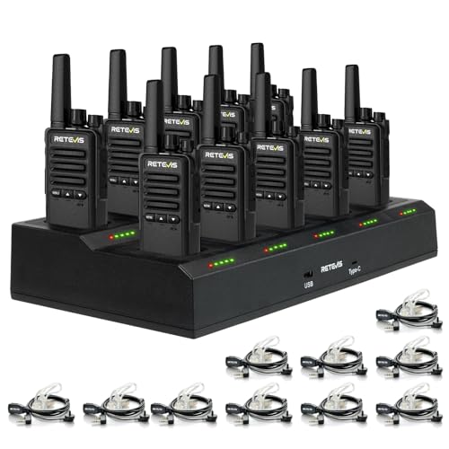 Retevis RT27 Walkie talkie med hörlurar, walkie talkies uppladdningsbar med USB-laddningsbas, PMR446 licensfri, 16 kanaler, VOX, tvåvägsradio för skola, säkerhetstjänst (10-pack, svart)…