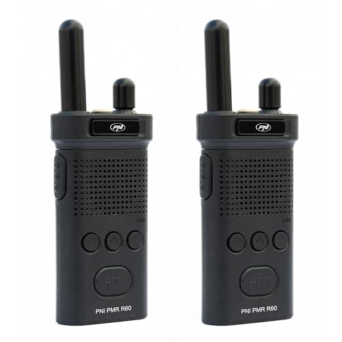 Kit med 2 bärbara radiostationer PNI PMR R60 446 MHz, 0,5 W, 16 programmerbara kanaler, 16 PMR och 50 CTCSS och 104 DCS-toner, skanning, nyckellås, SOS, skärm, 1 200 mAh batteri