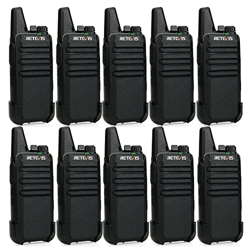 Retevis RT622 Walkie Talkie, Tvåvägsradio, Uppladdningsbar Tvåvägsradio Mini, VOX Scan Squelch, PMR446 Licensfri 16-Kanals, Nödlarm, Bärbara Walkie Talkies för Skolor, Restauranger (Svart, 10 Pack)