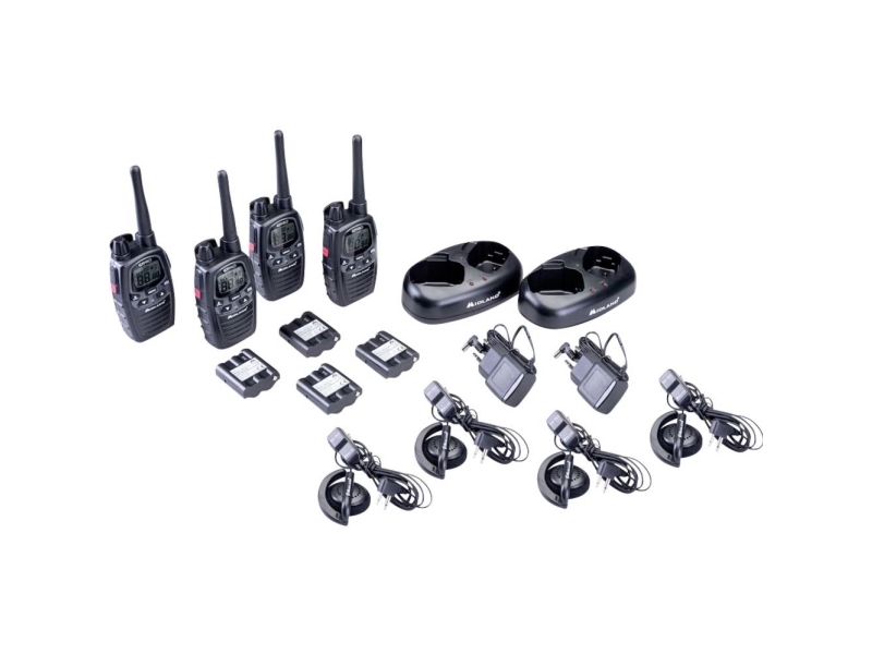 Midland Midland Midland G7 Pro 4Er Kofferset, Pmr446 2X Doppelstandlader, 4X Ma24-L Headsets C1090.19 Pmr-Walkie-Talkie Set Med 4 St.