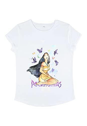 Disney Dam Pocahontas-Free Spirit Kvinnors ekologisk rullad ärm T-shirt, Vit, M