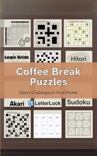 Coffee Break Puzzles: Clever Challenges in Your Pocket: Diverse Brain Games Collection: Logic Grid, Sudoku, Crossword, Hitori, Letterlock & Akari Puzzles with Solutions