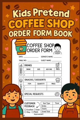 Kids Pretend Coffee Shop Order Form Book - Pocket Size: for Boys & Girls | Imaginative Play Coffee Shop Activity Book | Kids Barista Role Play Notebook