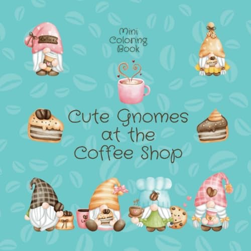 Mini Coloring Book CUTE GNOMES AT THE COFFEE SHOP: 7.5 x 7.5 Pocket Size For Travel On The Go, Cute Easy Designs for Calming Stress for Beginners, Seniors, Adults and Kids