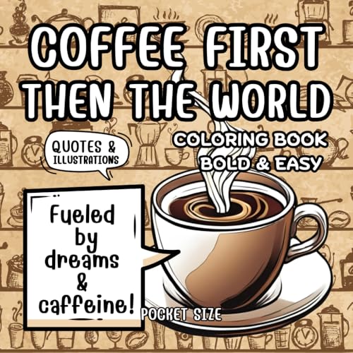Coffee First Then the World: Bold & Easy Pocket-Sized Coloring Book with Inspiring Coffee Quotes, Simple, & Motivational Coffee Themed Designs