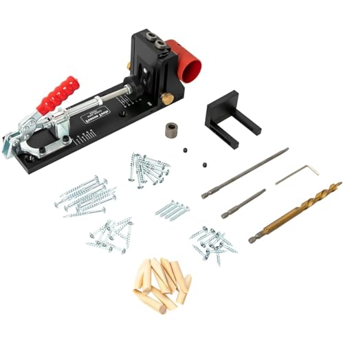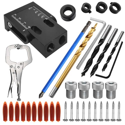 Pocket Hole Screw Jig Kit, Woodworking Tool Clamps Pocket Hole Jig with Tilt Clamp and Step Drill, Drill Guide Angle Tool for Finding Tools