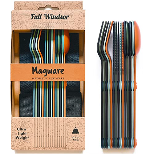 MAGWARE Magnetic Camping Utensils - Light Aluminum Travel Silverware with a Case for Camping, Picnic, Office & Your Cool Kid's Lunchbox | Pocket-Sized Cutlery | Set of Knife, Fork & Spoon (Full Set)