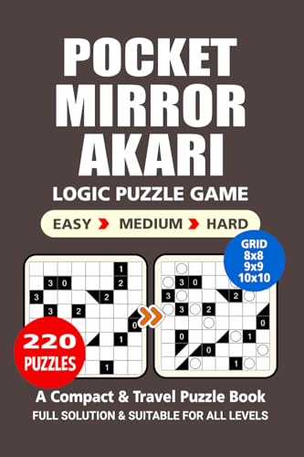 Pocket Puzzle Book: 220 Puzzles, Mirror Akari, Great Logic Puzzle Game, A Compact and Travel Puzzle Book, 3 Levels: Easy Medium and Hard, Pocket size 4x6 Inches.