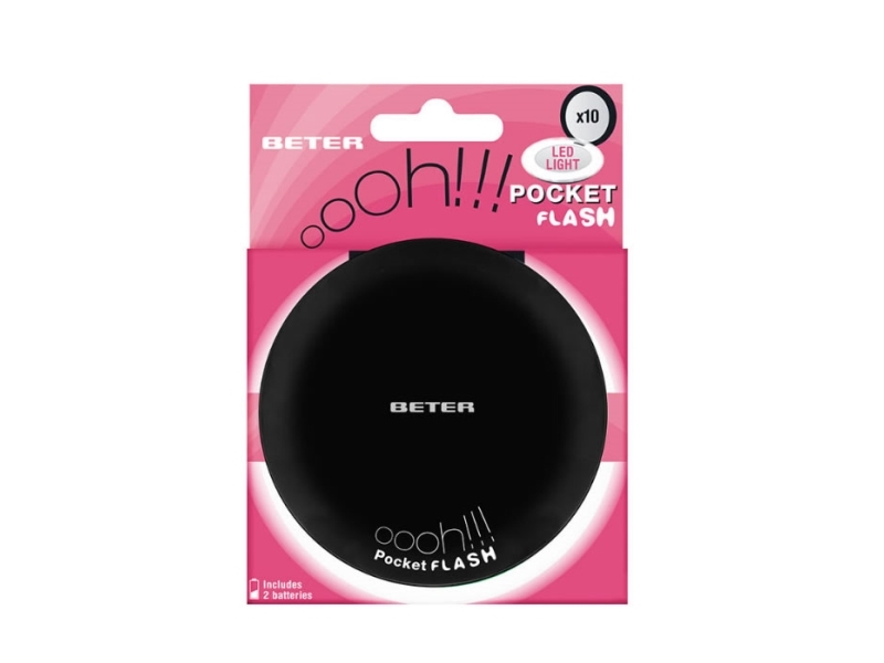 Beter Ohh! Pocket Flash Mirror With Light And 10X Magnification - Black
