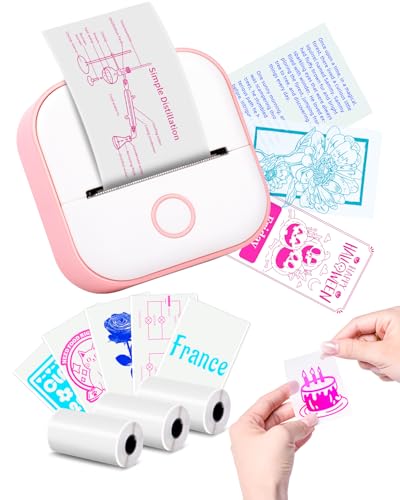T02 Mini Klistermärkesskrivare Memoking Bärbar Termisk Skrivare Inkless Sticker Maker Machine Pocket Printer för Studiografik, Anatomiska Diagram, Rosa