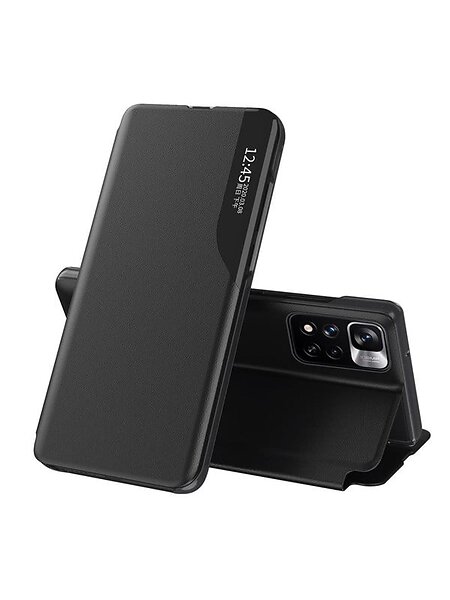 Eco Leather View Case ett elegant fodral med flik och stativfunktion för Xiaomi Poco M4 Pro Svart