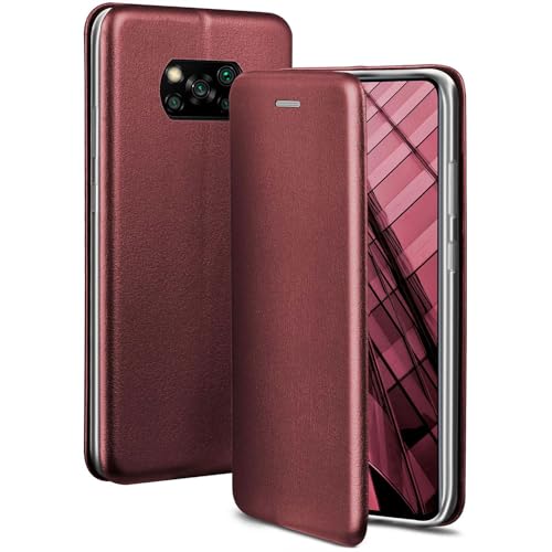 ONEFLOW Mobiltelefonfodral kompatibelt med Poco X3 NFC/X3 Pro – vikbart fodral, mobilväska med kortfack, flip fodral call funktion, läderutseende vikbart fodral med silikonstötdämpare, vinröd