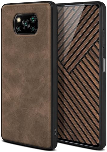 ONEFLOW Pali-Case kompatibelt med Xiaomi Poco X3 NFC/X3 Pro-fodral med kameraskydd, veganskt läderfodral, premium bakskydd mobiltelefonfodral, flexibelt skyddsfodral ultratunt – mörkbrun