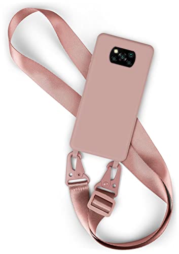 moex Hover Cover för Xiaomi Poco X3 NFC/X3 Pro mobiltelefonkedja med brett band, fodral med band för upphängning, avtagbar nylonkedja med karbinhake, snygg och extremt robust – gammalrosa