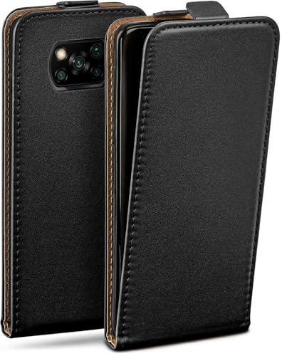 moex Flip Case för Poco X3 NFC/X3 Pro, vikbart fodral med 360 graders skydd, mobiltelefonfodral med displayskydd, PU-läder mobilväska läderfodral, flip fodral vikbart fodral svart