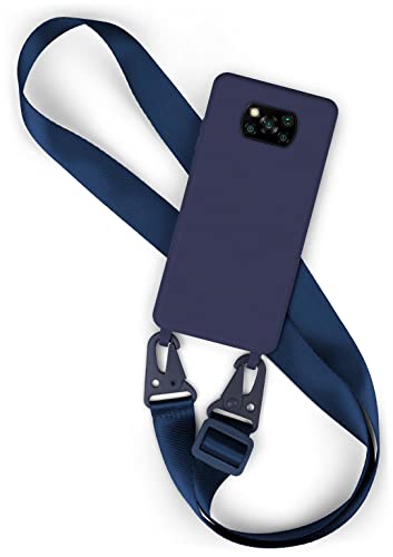 moex Hover Cover för Xiaomi Poco X3 NFC/X3 Pro mobiltelefonkedja med brett band, fodral med band för upphängning, avtagbar nylonkedja med karbinhake, snygg och extremt robust – marinblå