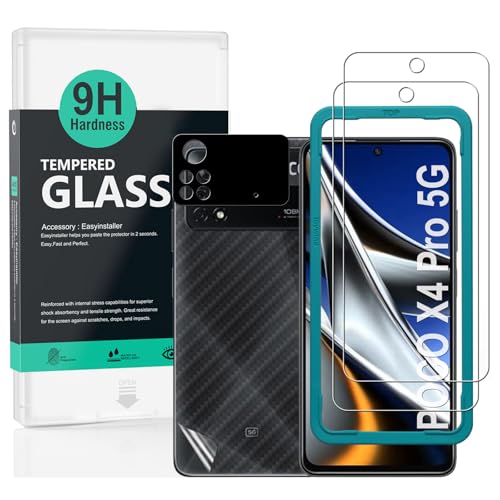 Ibywind Screen Protector for Poco X4 Pro 5G 6.67",[Pack of 2] with Camera Lens Cover (Metal Material), Rear Carbon Fiber Skin Cover, Including Easy Installation Kit