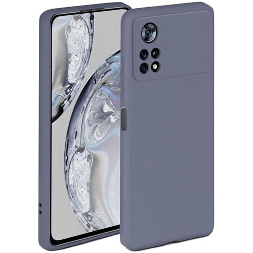 ONEFLOW Mjukt fodral kompatibelt med Xiaomi Poco X4 Pro 5G, fodral av silikon, upphöjd kant för skärmskydd, två lager, mjukt mobiltelefonfodral – matt blå grå