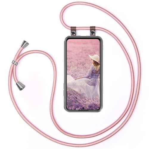 moex Mobiltelefonkedja kompatibel med Xiaomi Poco X4 Pro 5G-fodral med band justerbar längd, mobiltelefonfodral att hänga upp, silikonfodral transparent med snöre avtagbar i roséguld