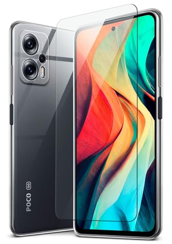moex Mobiltelefonfodral för Xiaomi Poco X4 GT-fodral, silikonfodral med skyddsfilm, 360 graders skydd, stötsäkert, gulningsfritt skyddsfodral – transparent