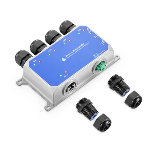 VOANZO Utomhus Gigabit PoE Extender 1 in 3 Out 8023afat 4 Port PoE Repeater IP55 Vattentät Förläng ström Dataöverföring 100m328ft väggmontering och spel