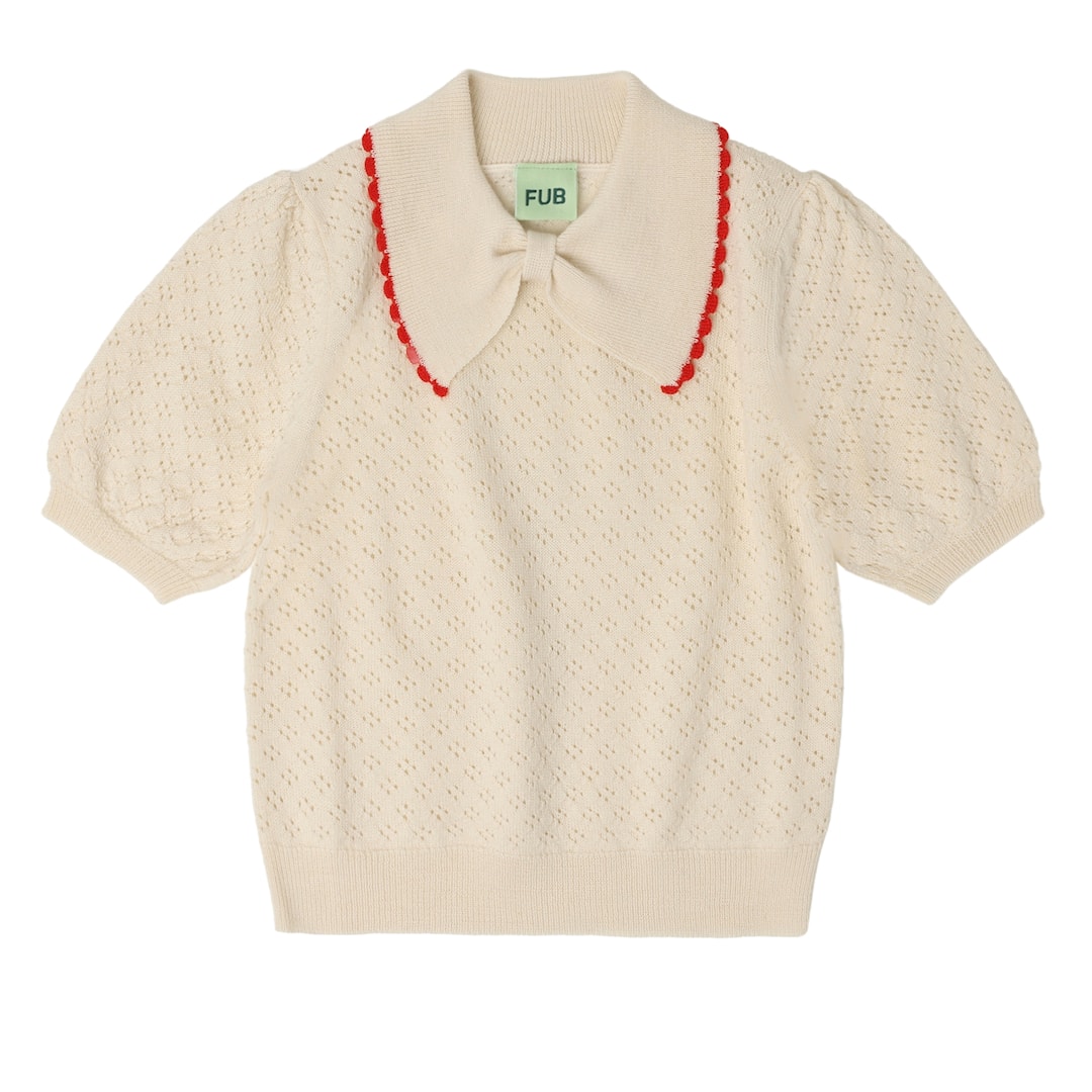 FUB Pointelle Polo Ecru Ecru-110 cm Wool Beige 110 cm kvinna