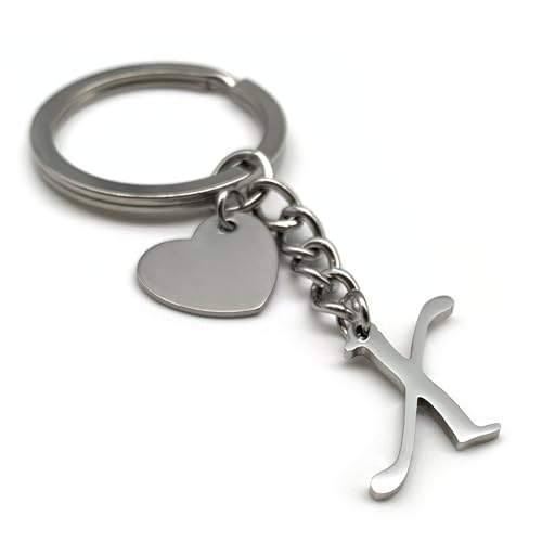Nyckelring med Bokstav och Hjärta - Namn A-Z brev - Handgjorda hänge i rostfritt stål - Present pojkvän flickvän partner bil (X)