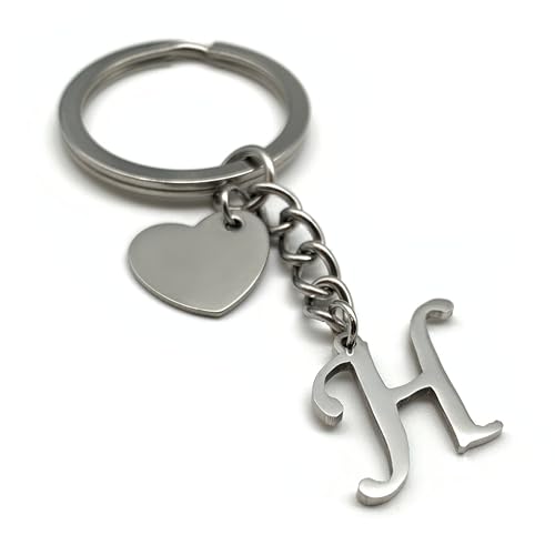 Nyckelring med Bokstav och Hjärta - Namn A-Z brev - Handgjorda hänge i rostfritt stål - Present pojkvän flickvän partner bil (H)