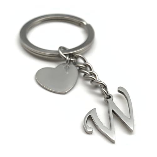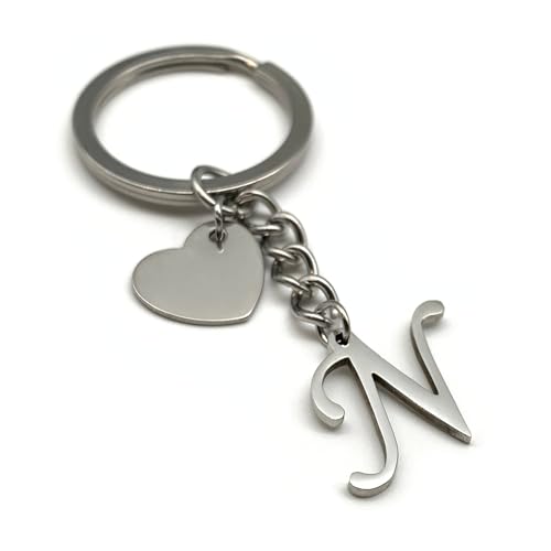 Nyckelring med Bokstav och Hjärta - Namn A-Z brev - Handgjorda hänge i rostfritt stål - Present pojkvän flickvän partner bil (N)