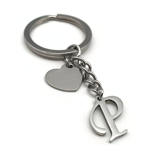 Nyckelring med Bokstav och Hjärta - Namn A-Z brev - Handgjorda hänge i rostfritt stål - Present pojkvän flickvän partner bil (P)
