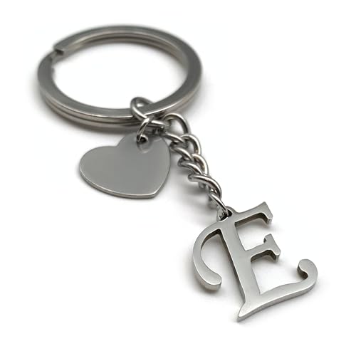 Nyckelring med Bokstav och Hjärta - Namn A-Z brev - Handgjorda hänge i rostfritt stål - Present pojkvän flickvän partner bil (E)
