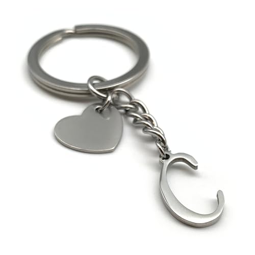 Nyckelring med Bokstav och Hjärta - Namn A-Z brev - Handgjorda hänge i rostfritt stål - Present pojkvän flickvän partner bil (C)
