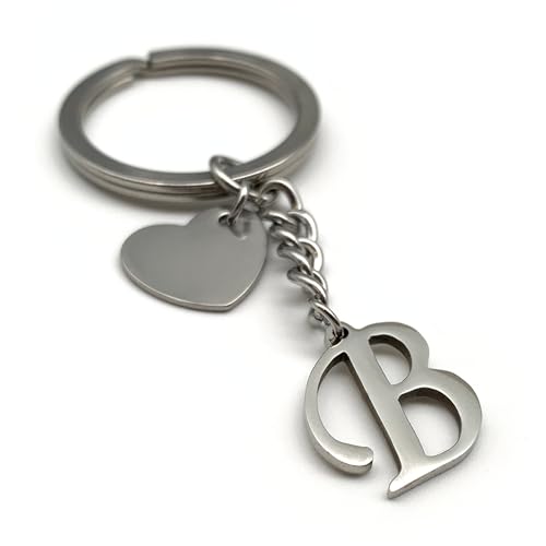 Nyckelring med Bokstav och Hjärta - Namn A-Z brev - Handgjorda hänge i rostfritt stål - Present pojkvän flickvän partner bil (B)