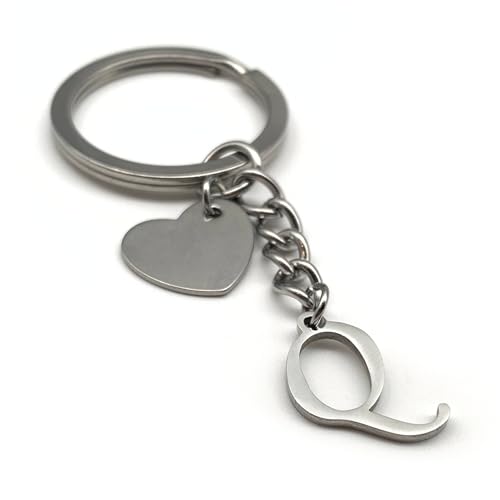 Nyckelring med Bokstav och Hjärta - Namn A-Z brev - Handgjorda hänge i rostfritt stål - Present pojkvän flickvän partner bil (Q)