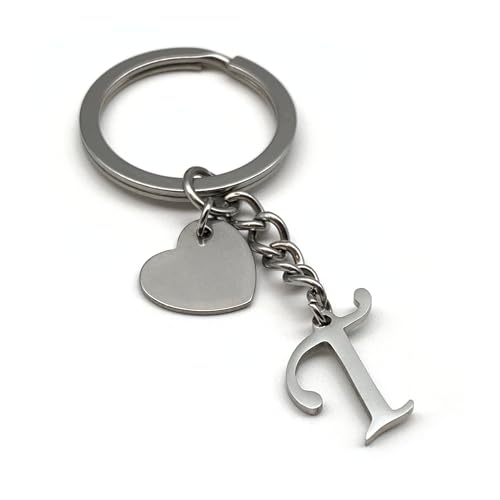 Nyckelring med Bokstav och Hjärta - Namn A-Z brev - Handgjorda hänge i rostfritt stål - Present pojkvän flickvän partner bil (T)