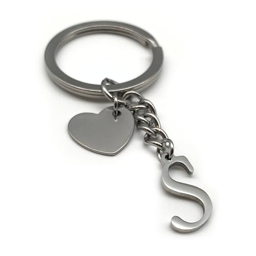 Nyckelring med Bokstav och Hjärta - Namn A-Z brev - Handgjorda hänge i rostfritt stål - Present pojkvän flickvän partner bil (S)