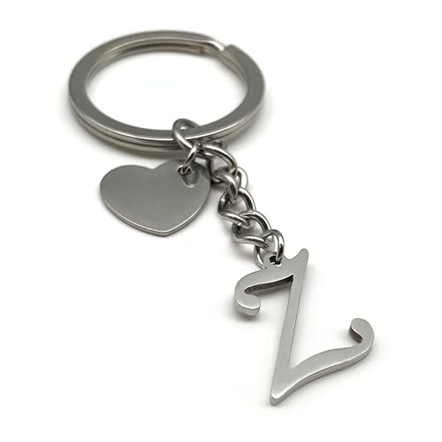 Nyckelring med Bokstav och Hjärta - Namn A-Z brev - Handgjorda hänge i rostfritt stål - Present pojkvän flickvän partner bil (Z)