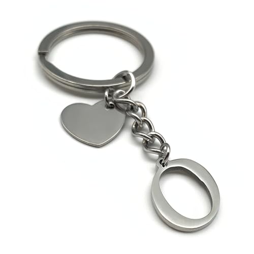 Nyckelring med Bokstav och Hjärta - Namn A-Z brev - Handgjorda hänge i rostfritt stål - Present pojkvän flickvän partner bil (O)