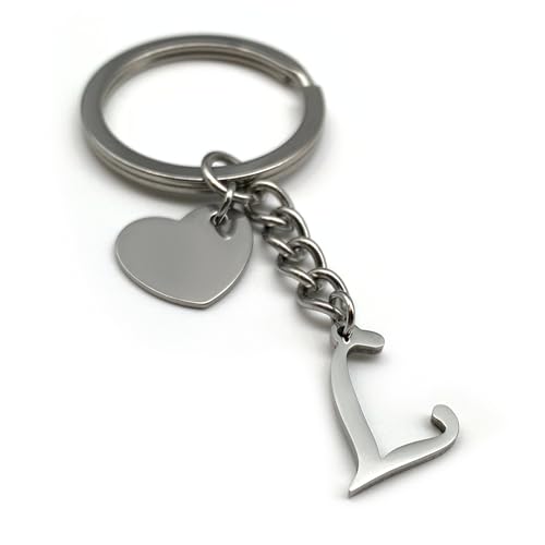 Nyckelring med Bokstav och Hjärta - Namn A-Z brev - Handgjorda hänge i rostfritt stål - Present pojkvän flickvän partner bil (L)
