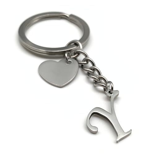 Nyckelring med Bokstav och Hjärta - Namn A-Z brev - Handgjorda hänge i rostfritt stål - Present pojkvän flickvän partner bil (Y)