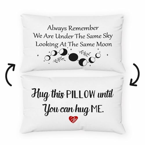 Långdistansrelationsgåvor alltid kom ihåg att vi är under samma himmel vändbar dekor kuddöverdrag dekor för hem sovrum, 30 cm x 50 cm kuddfodral, bra present till pojkvän, flicka (vit-2)
