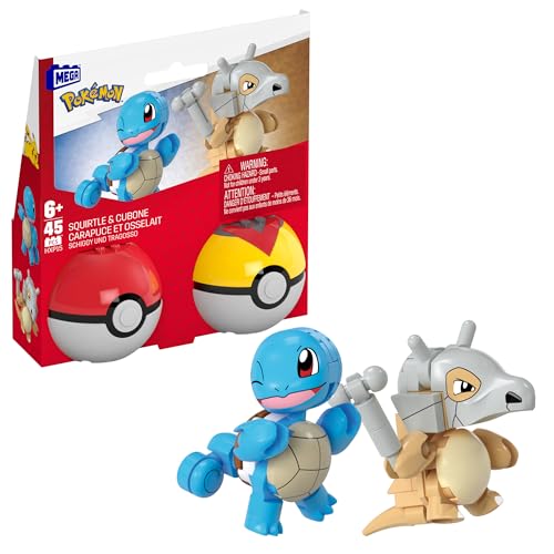MEGA Pokémon-actionfigur byggleksaksset, 2-pack Poké-bollar Squirtle och Cubone, 45 delar, för barn, HXP15