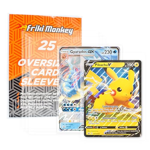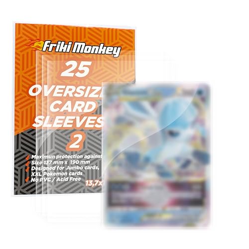 Friki Monkey överdimensionerad kortsparare, 25 plastärmar, 170 x 215 mm, PSA-gradering, kompatibel med Pokemon Jumbo XXL-kampanjkort